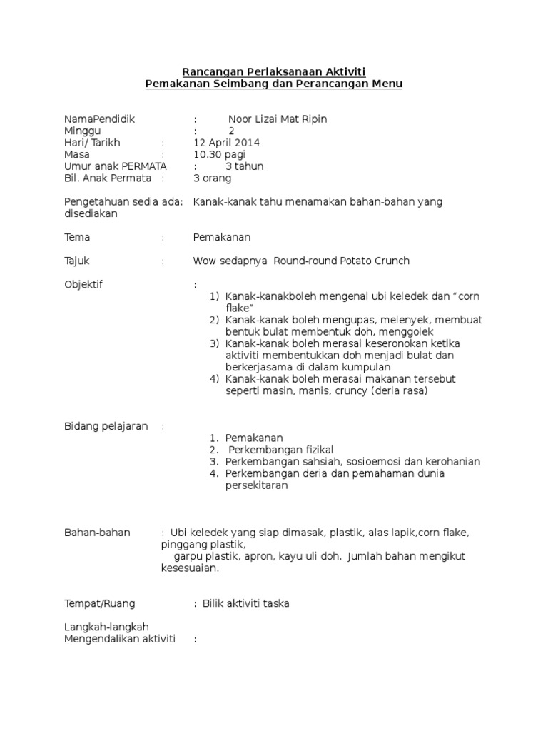 Rpa Rutin 14 8 Membaca from imgv2-1-f.scribdassets.com Bahasa merupakan medium komunikasi asas samada dengan tulisan, lisan mahupun dengan panggunaan isyarat. Peringkat perkembangan kanak kanak dan teori perkembangan yang berkai. Rancangan pelaksanaan aktiviti (rpa) siri kap 1 /20 nama agensi latihan : Peringkat perkembangan manusia wannura terapi. Kajian menunjukkan bahawa perkembangan pendengaran dan bahasa boleh dirangsang seawal di dalam rahim ibu. Persidangan antarabangsa pedagogi islam dalam pendidikan 2017 (icipe2017). Berikut adalah panduan untuk memohon bantuan secara online: Perkembangan fisik merupakan dasar bagi kemajuan perkembangan berikutnya, dengan meningkatnya pertumbuhan tubuh baik berat badan maupun tinggi badan serta kekuatannya.